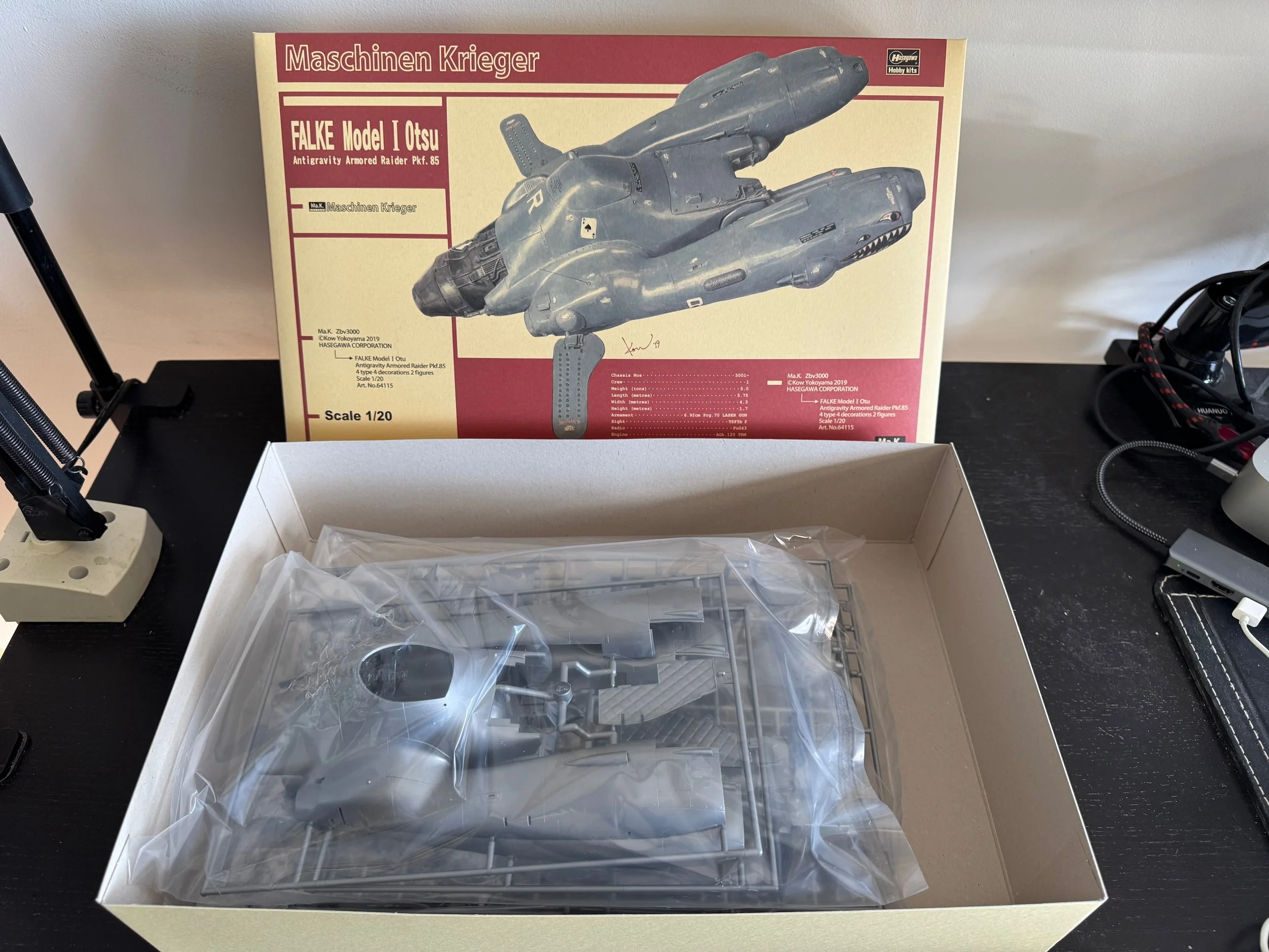 The large 1/20 scale provides an excellent canvas for advanced finishing techniques such as weathering, paint chipping, and panel shading—hallmarks of Ma.K. modeling. With its unique blend of aircraft and armored vehicle design elements, the Falke is a striking addition to any science-fiction model collection.